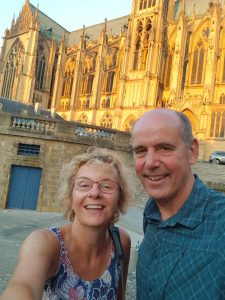 Deze rit is dus gedeeltelijk een ‘moetje’. Het kan niet altijd feest zijn, zei mijn moeder al eens. Feest wordt het wel weer wanneer we Metz bereiken. Wat een leuke stad is dat toch! Tijdens onze vroegere caravanvakanties kwamen we hier al regelmatig en kampeerden -net als nu- op de stadscamping. Deze stad straalt al iets zuidelijks uit terwijl we nog maar net de grens over zijn. De prachtige kathedraal, de gezellige pleinen met talloze cafés. Op Place St. Jacques eten we een hapje bij een van de vele restaurants. ’s Avonds laat nog even zwieren rond de kerk, langs de Moezel en de terrassen: Dit is een nog steeds niet ontdekte parel langs de snelweg voor al die Nederlanders die alleen maar jachten naar de Ardeche of de Provence. Sssssssttt…. Niet verder vertellen hoor!