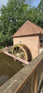 Vanaf de camping volgen we het bospad dat aansluiting geeft op de route. Maar dat pad mag eigenlijk niet de naam ‘fietspad‘ dragen, want het is een pittig moddertraject met rotsige stenen. Na 3 kilometer ploeteren geven we er de brui aan en puzzelt René een andere route over veel prettiger asfalt bijeen. En dat zal gedurende de dag nog enkele malen gebeuren…. De bedenkers van de Hanzeroute lijken een stevige voorkeur te hebben voor ongeplaveide, soms rotsige en vooral modderige boswegen. Ook nooit geweten dat er nog zoveel landwegen in Duitsland geplaveid zijn met vooroorlogse kasseien. We stuiteren deze dagen heel wat af😳