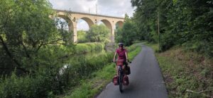 Het landschap dat we doorkruisen bestaat uit uitlopers van het Sauerland. Heuvels die zich soms uitstrekken tot bijna laaggebergte, met hier en daar een dromerig dorpje. Soms moet je even flink op de trappers staan, direct daarna krijg je er een gratis afdaling voor retour. We genieten met een grote ‘G’, dit is hoe vakantie moet zijn. Leuk is dat we af en toe ook wat meekrijgen van de lokale fauna. Roofvogels die hoog door de lucht zweven, op zoek naar een lekker hapje. Herten die plotseling over de weg schieten, konijntjes en fazanten.. te veel om op te noemen. En natuurlijk ook de langzamere verkeersdeelnemers, waarvoor je moet oppassen bij het passeren. Leuk genoeg om ff voor van de fiets te stappen en een close-up te maken 😉