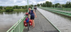 Resteert nog een bezienswaardigheid te melden die we vandaag tijdens onze tocht tegenkwamen: het 660 meter lange aquaduct van Briare. De vermaarde architect Gustav Eiffel heeft in 1896 nog zijn medewerking verleend aan de bouw van dit imposante en fraai gedecoreerde bouwwerk. Bijzonder om op het midden van het aquaduct het water van het Canal latéral te zien kruisen met dat van de Loire. Echt een bezienswaardigheid die druk bezocht wordt, ook wanneer wij over de waterbrug fietsen.