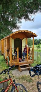 We bekijken de website van de camping om te zien of er eventueel een plek is om bij regen te schuilen. Dan zien we plotseling de mogelijkheid om een roulotte te huren. Da’s wel lachen, zo’n pipokar. We hebben in de loop der jaren al aardig wat gekke overnachtingsplekken gehad, maar deze ontbrak nog op ons lijstje. We bellen de camping, en ja hoor, er is nog een kar beschikbaar. Mooi zo!