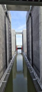 Genoeg medisch gezeur. Vandaag tokkelen we dus van Lüneburg naar het reisdoel Güster, een traject van ruim 60 kilometer. Over de rit zelf valt niet zo heel veel meer te vertellen dan dat we lekker gingen, het weer ècht warm was maar goed te doen en dat we onderweg als bezienswaardigheid onder andere een imposante bootlift tegenkomen. Bij de plaats Scharnebeck is een gigantisch bouwwerk in het kanaal geplaatst om het bootverkeer met behulp van een lift naar boven of beneden te verplaatsen. Indrukwekkend!