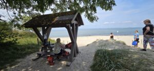 Bijzonder vinden we dat het boerenland en de bossen tot vlak voor de zeekant doorlopen. Wij hebben geen duingebied gezien zoals je dat van thuis kent. En wellicht dat dit te maken heeft met het feit dat de Oostzee nauwelijks getijden kent, waardoor er ook geen sprake is van golven. Het rimpelloze water doet ons meer denken aan het IJsselmeer dan aan een heuse zee…. Maar mooi is het zeker, en het zorgt voor een heel nieuwe twist aan ons fietsverhaal.