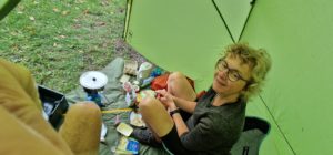 Wanneer je de verhaaltjes van de afgelopen dagen terugleest, dan gaat het veel te vaak over het weer. Daaruit kun je afleiden dat dit ons blijkbaar bezighoudt, en zeer waarschijnlijk omdat de omstandigheden niet erg prettig zijn. En dat klopt: vandaag mag getypeerd worden als een typische ‘baggerdag’. Bij de start gaat het direct al niet goed. Als we uit onze slaapzak kruipen overvalt ons een koude dag met harde wind. Niet echt aangenaam, dus organiseren we ons ontbijtje maar op de vierkante meter in de tent. Daar zitten we enigszins beschut, ook handig wanneer je theewater op een primus aan de kook wil krijgen.