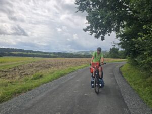 Vanaf de plaats Bad Berneck moet er gewerkt worden. We gaan hoogtemeters maken om uiteindelijk bij de plaats Fichtelberg uit te komen. Een voordeel daarbij is dat we een stuk van de stijging via een voormalige spoorlijn kunnen maken. Maar voordat je denkt dat dit dus een eitje is… 10 kilometer onafgebroken stijgen a 3% tot 6% ga je echt wel in de kuiten voelen. Om die reden zijn we extra blij met onze Pendix motortjes die net dat ene zetje in de rug geven, terwijl je daarbij zelf nog steeds een aardige inspanning moet leveren.