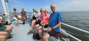 Een heerlijk vaartochtje volgt, want op deze zonovergoten dag is het prima om op het IJsselmeer een verfrissend windje te vangen. Hoe warm het is merken we des te meer in Stavoren, waar het op de kade loeiheet is. Na een snel broodje zoeken we verkoeling door snel weer op de fiets te klimmen. De rijwind doet wonderen.