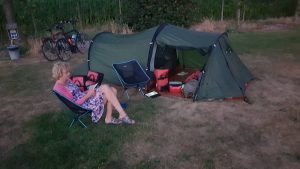 Maar bij Nederhemert gaat het toch even fout. De pont daar doet op zondag geen dienst. Het komt ons op een pittig stukje omfietsen te staan, maar uiteindelijk weten we vlakbij ‘‘s-Hertogenbosch de Maas over te steken. Na een smakelijke lunch in deze mooie stad rijden we de laatste kilometers weg. We kiezen als overnachtingsplek voor een minicamping in Boxtel, zo’n 15 kilometer onder ‘’s-Hertogenbosch.