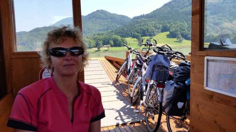 Wij zetten de komende dagen de laatste etappes in naar Wenen. En vandaag staat een relatief korte trip naar Willersbach op het menu. Eerst steken we bij Mauthausen de Donau over met het veer. Direct na Mauthausen begint er een stuk van 12 kilometer recht toe- recht aan. Alsof je de Afsluitdijk doet. En zonder plekje om even een lekker bakkie te doen. Totale leegte, alleen maar vlak land, bos en water. Net op het moment dat uw correspondent er grondig genoeg van krijgt verschijnt gelukkig de plaats Grein op de borden. En als bij toverslag verandert het landschap. Prachtige beboste heuvels, geen ‘Donaukanaal’ maar een slingerende rivier en tal van leuke dorpjes. Hier worden we vrolijk van! Vrijwel tegelijkertijd breekt de zon ook goed door en komt het beloofde zomerse weer voor de dag.