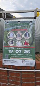 We zijn aangeland op Camping Grav-Insel, gelegen op de Uiterwaarden van de Rijn ter hoogte van de plaats Wesel. Het terrein van deze camping is van ongekende omvang; eindeloze rijen caravans staan hier op elkaar gepropt. En vandaag is het Schlagerparade. Velen hebben er lang naar uitgekeken, zo blijkt wanneer we op het terras nabij het ‘Event Center’ een drankje nuttigen.