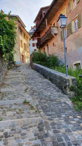 Morgen wacht de etappe naar Yverdon Les Bains op ons. Vanaf daar gaan we bekijken of de route iets kunnen aanpassen. Officieel volgt de Südfussroute vanaf deze stad een stuk door de bergachtige Jura, met dito klimwerk. Omdat de temperatuur vanaf morgen nog meer gaat oplopen hebben we daar niet zo’n zin in. Onze gedachten gaan terug naar vorig jaar toen we in de Zwitserse Alpen zowat het leven lieten door een hele hoge pas bij snoeihete temperaturen te willen nemen. Vanavond kwamen we er al puzzelend achter dat er ook een alternatief is. De Rhône-route volgt de oevers van het meer van Genève en zal dus ongetwijfeld minder hoogtemeters bevatten. Deze trail loopt ook door Yverdon, dus we kunnen naar wens overschakelen op dit alternatief. We zullen zien!