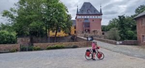 Vanochtend, bij het vertrek vanuit ons hotel, zijn we al beducht voor wat de dag ons zou gaat brengen. Buienradar geeft ons geen al te beste voorspellingen, dus laten we het regenpak maar bovenin de fietstas doen. Op de fiets gezeten tokkelen we weg uit Jülich, het stadje waar we gisteren een aangename pitstop hebben gemaakt. Al snel fietsen we weer langs de rivier de Ruhr. En wat we gisteren al schreven gaat voor vandaag ook wel weer op: Na verloop van tijd weet je het wel zo’n beetje, dat fietsen over een grindpad tussen de bomen en vlak naast een rustig kabbelende rivier.