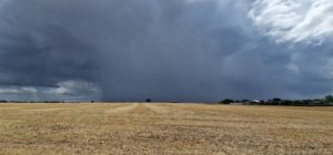 Minder prachtig is de lucht, die links en rechts van ons samenpakt tot bijna inktzwarte wolkenmassa’s. Het is duidelijk zichtbaar dat het op verschillende plekken al aan het hozen is, maar wij houden het vooralsnog droog. We kunnen zelfs rustig picknicken, terwijl bovenons de lucht openbreekt en we ineens vol in de zon zitten. Maar daarna schuift zo’n zwarte wolkenmassa toch wel vervaarlijk onze kant op. Overdreven..? Kijk zelf maar….