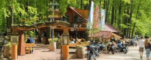 Nou ja, hotelletje.. we spreken hier over een knots van een hotel, gelegen aan de oever van het meer. Zo verkassen we vandaag dus van een mega-camping naar een mega-hotel. Na ons in het Seehotel opgefrist te hebben wandelen we naar de overkant van de weg waar de sfeervolle ‘ Jupps biergarten’ gevestigd is. Kijk, da’s nog eens vakantie vieren! We nemen een heerlijk lokaal biertje en genieten van de gezellige drukte in deze fantasievol ingerichte biertuin. En dan, binnen een mum van tijd, slaat het weer volledig om. Een windvlaag giert over het terras en er komt een stevige hoeveelheid regenwater naar beneden. Binnen enkele tellen is de biergarten dan ook volledig verlaten en hollen ook wij terug naar het hotel.