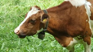 Laten we in stijl en op authentieke wijze afscheid nemen van dit Alpenland met een geluidsopname die ik onderweg heb gemaakt bij een druk bevolkt weiland. Op de foto staat Bertha 24 (?), een van de veroorzaaksters van al deze geluiden.