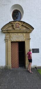 En ook de zon helpt mee, want steeds meer komt deze achter de wolken vandaan. Een heerlijke dag dus, die wordt bekroond met de camping ‘Eversburg’ in Warburg alwaar we gepland hebben te overnachten. Zodra we daar arriveren melden we ons eerst -zoals het hoort- bij de receptie. Daar zit een Duitse dame op leeftijd die ons eerst naar het tentenveld dirigeert om onze tent op te zetten. “Over tien minuten is er koffie!” aldus de kordate eigenaresse.