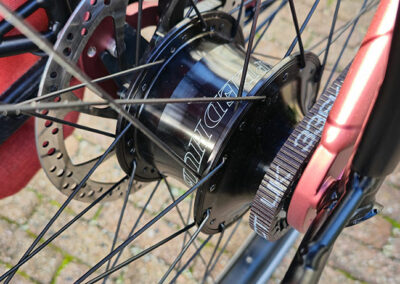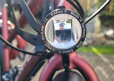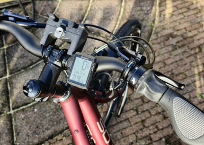 En in de eerste week van 2024 luiden we het nieuwe jaar dus feestelijk in met de nieuwe Travelmaster. Voorzien van alle denkbare luxe zoals een heuse Rohloff naaf, onderhoudsarme riemaandrijving, schijfremmen, hippe verlichting en -opnieuw- een Pendixmotor. We kiezen bij de oplevering voor een ‘bikefit’ waarvoor Roel Peereboom opnieuw zeer ruim de tijd neemt. De fiets wordt héél precies ingesteld op de wensen van Petra. En na een ochtendje proberen en testen kan het rijwiel mee op de fietsendrager, richting huis. Top!